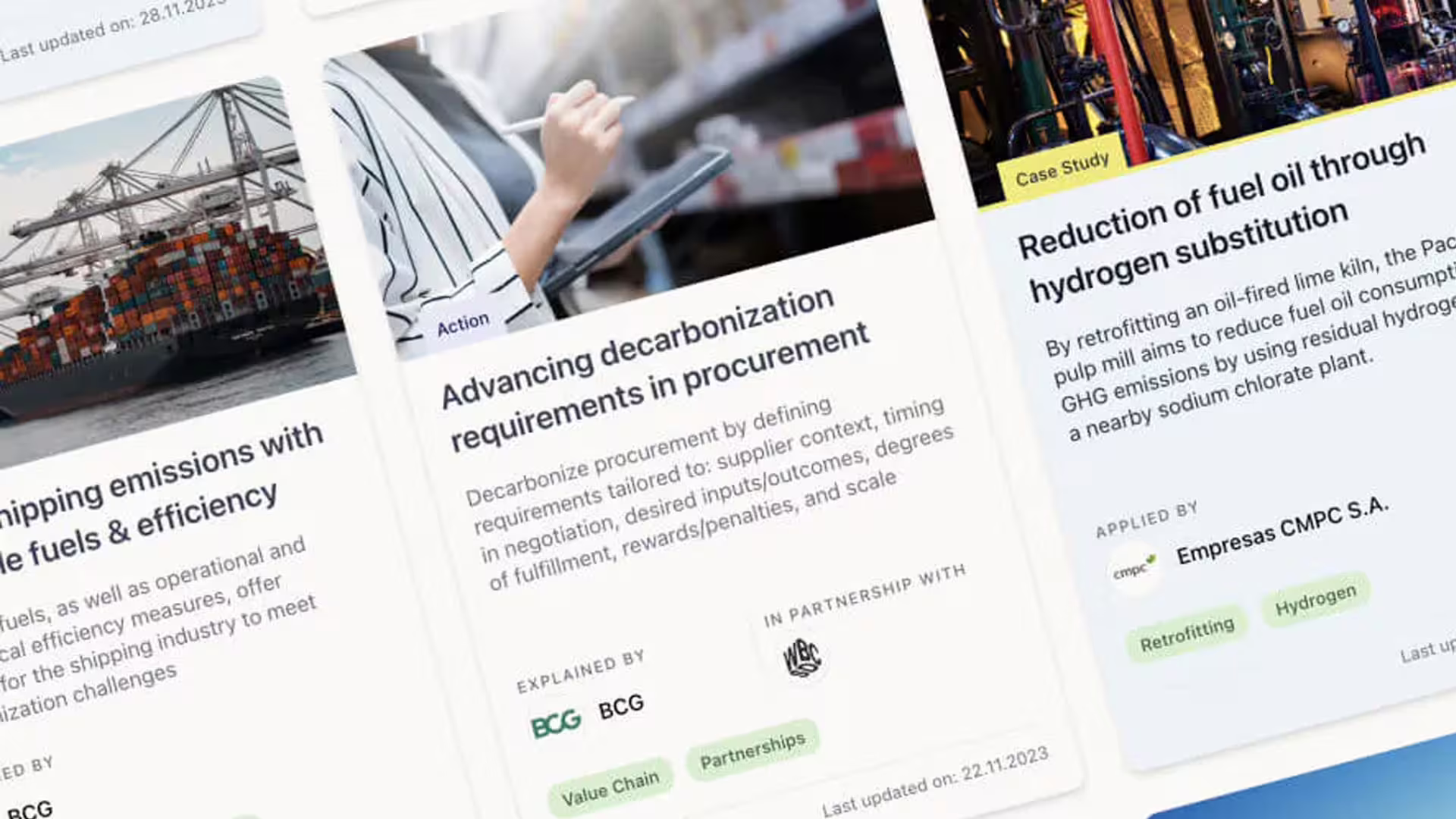2) A Climate Action Library, offering a collection of 100+ decarbonization levers and case studies including business cases and implementation details