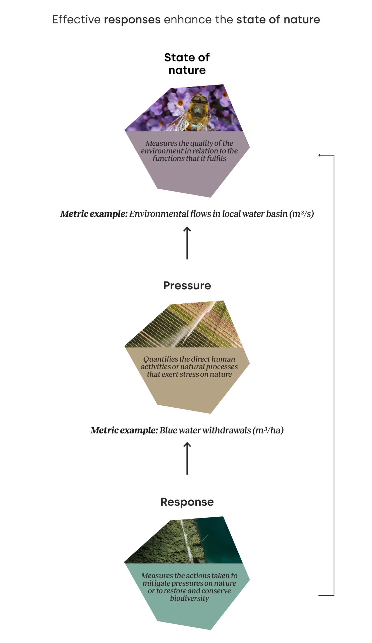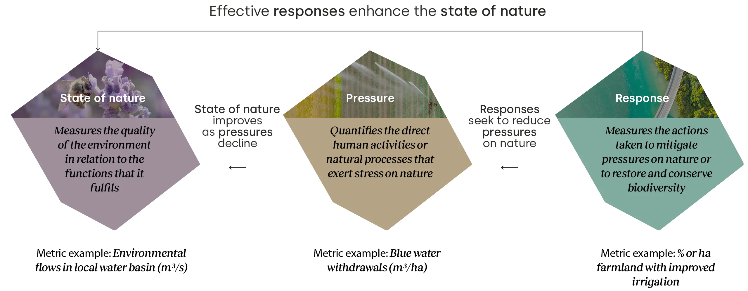 The Portal features three categories of metrics – state of nature, pressure and response metrics – as defined in the diagram below.