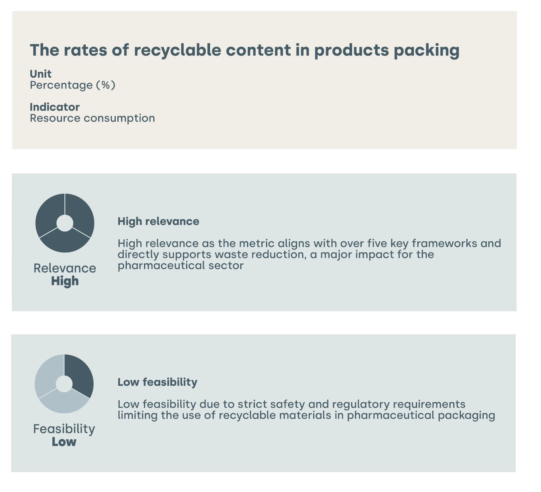 Relevance and feasibility of a metric linked to the pharmaceutical sector (example)