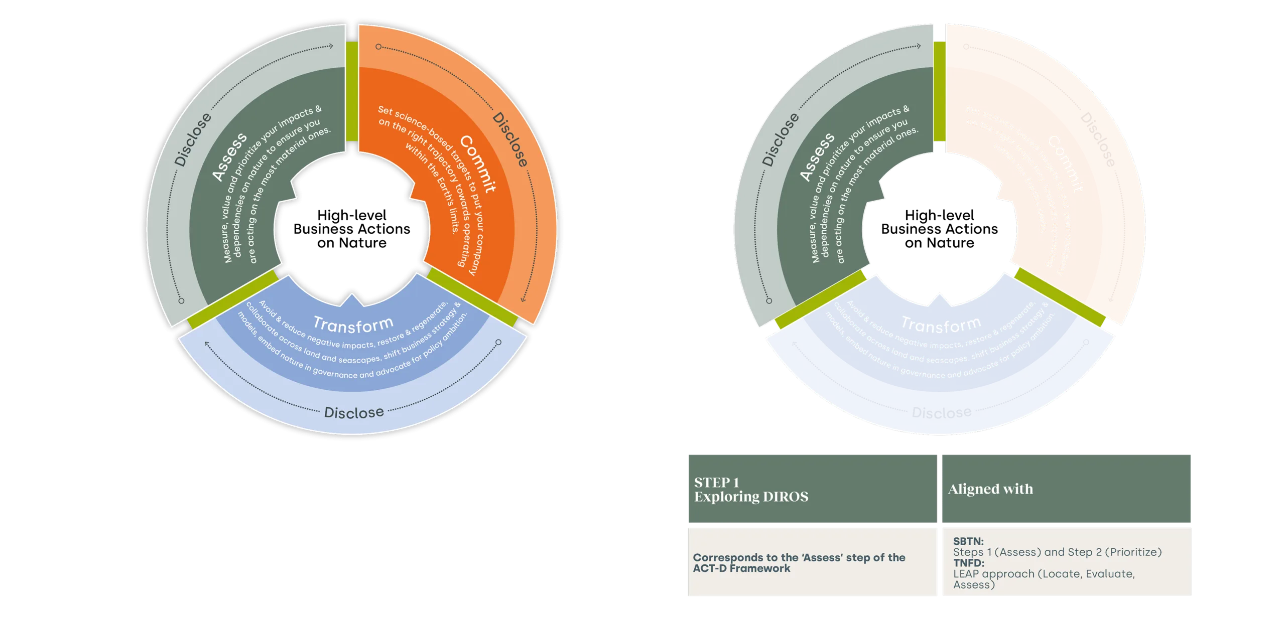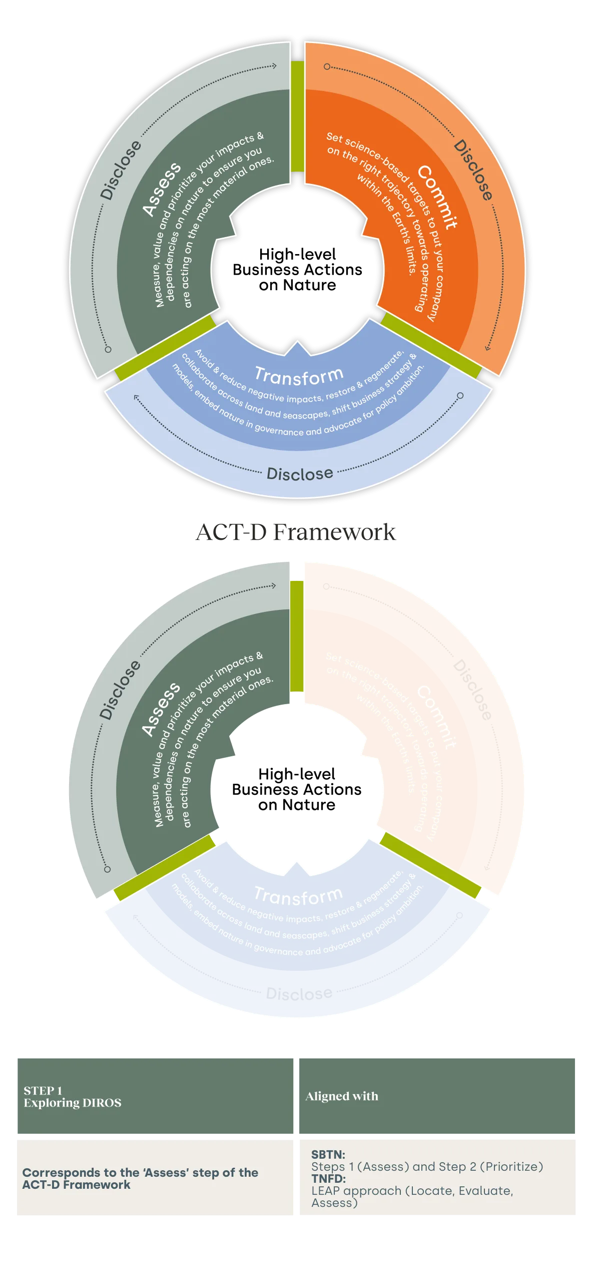 The ACT-D Framework and STEP 1: Exploring dependencies, impacts, risks & opportunities (DIROs)