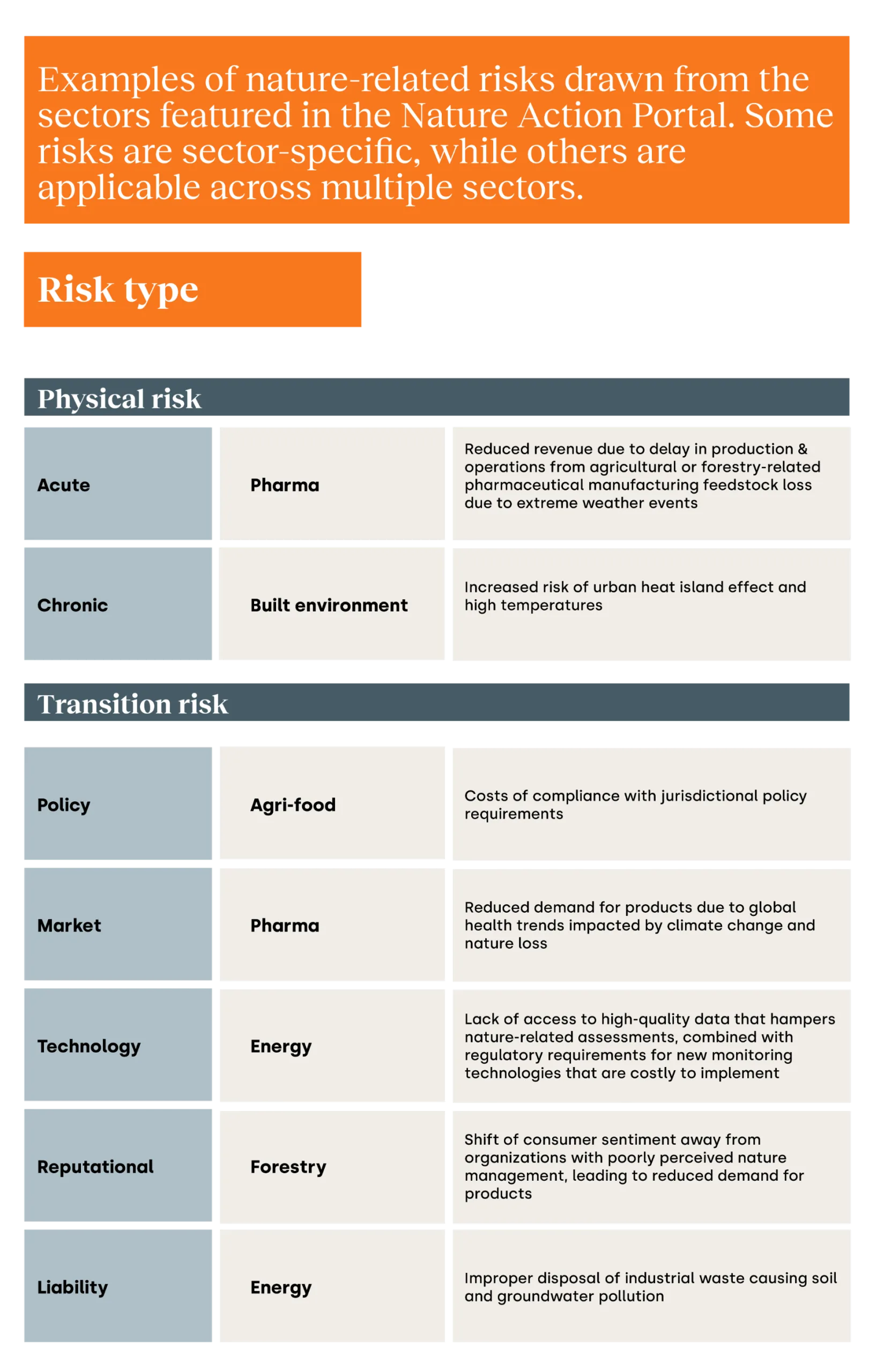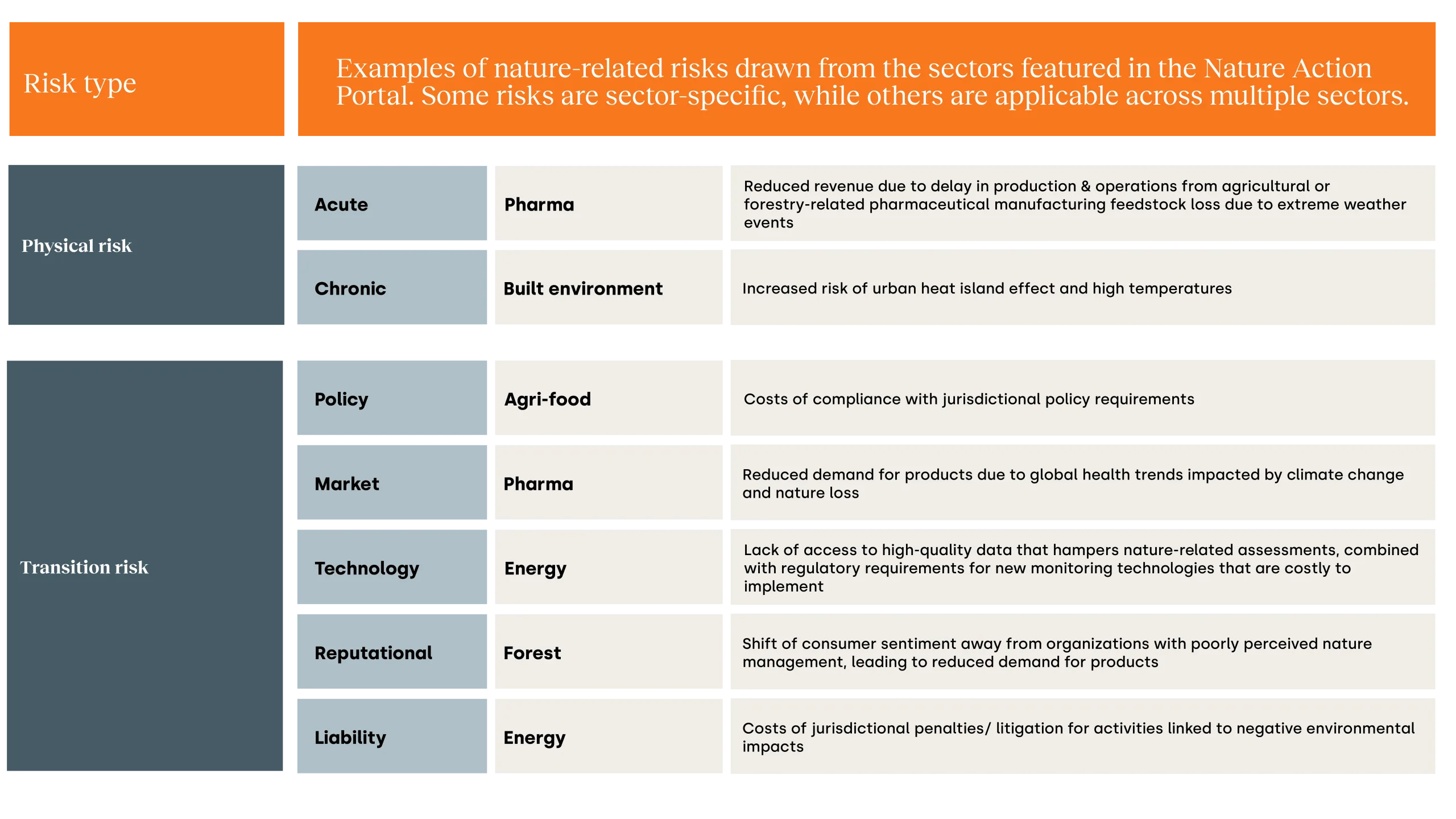 Nature-related risks (examples from the different sectors featured in the Nature Action Portal)