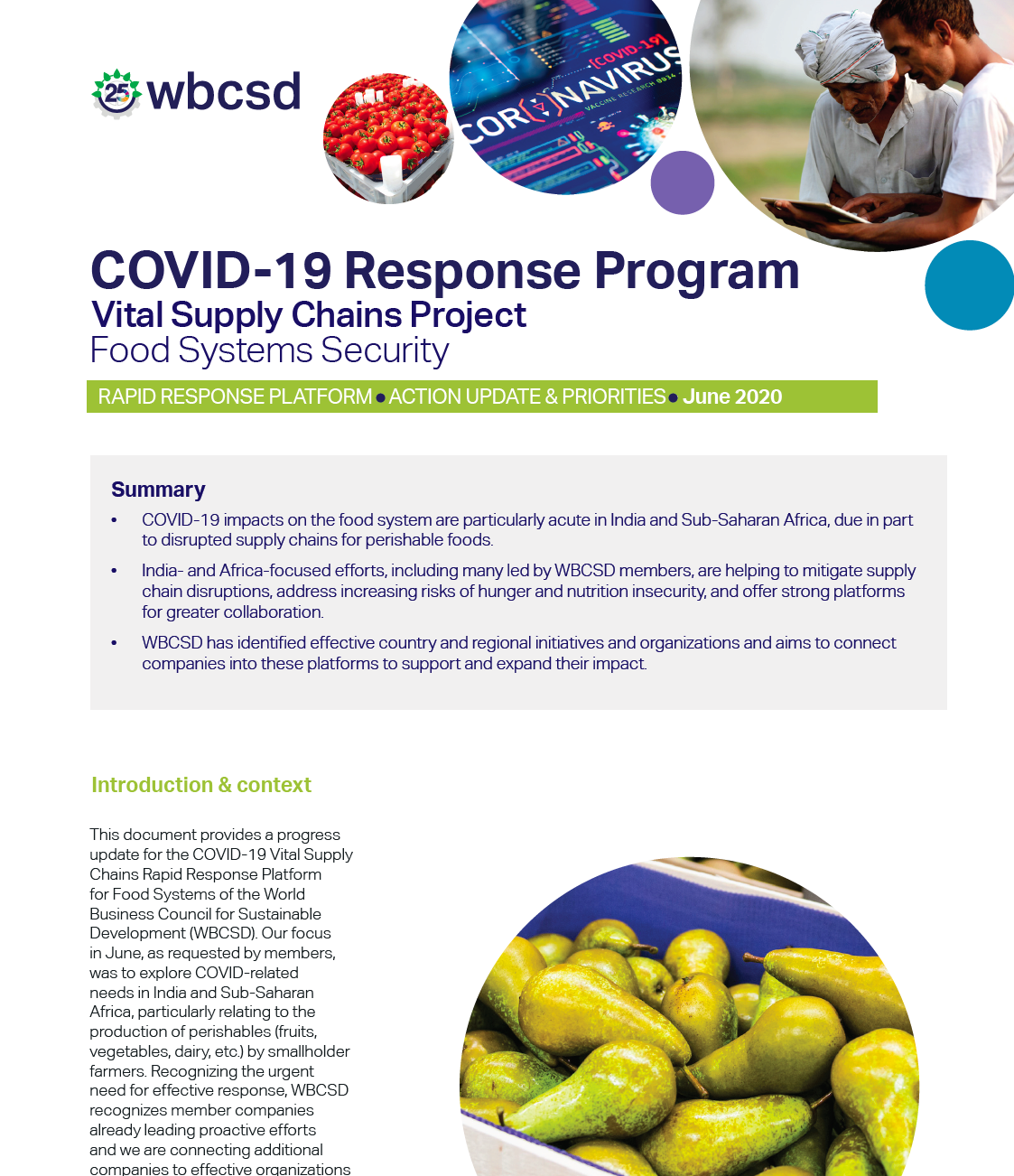- India- and Africa-focused efforts, including many led by WBCSD members, are helping to mitigate supply chain disruptions, address increasing risks of hunger and nutrition insecurity, and offer strong platforms for greater collaboration.