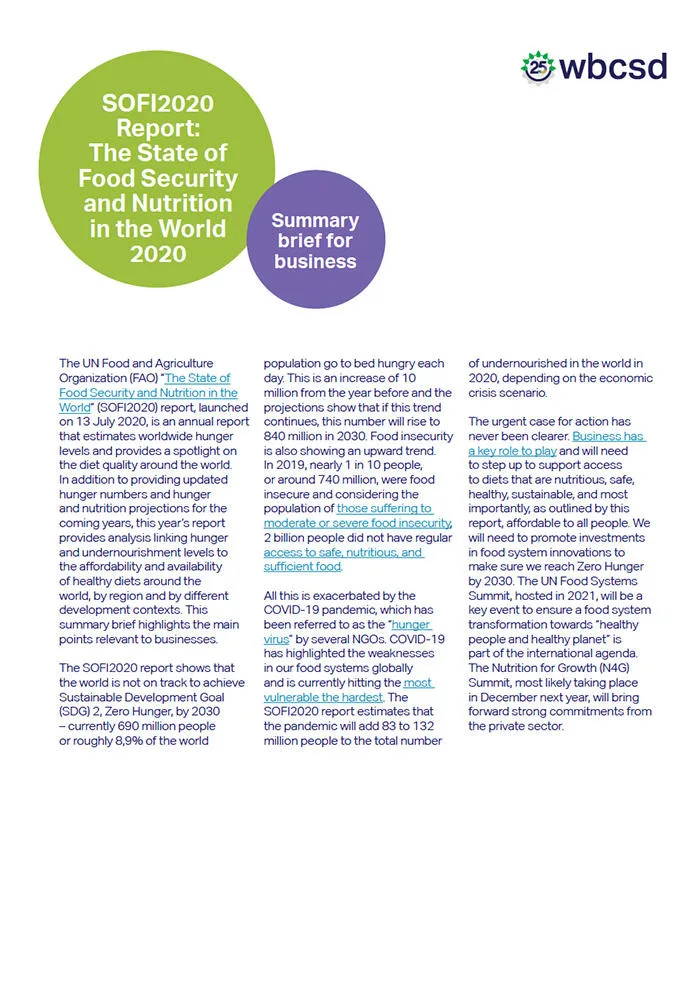 The UN Food and Agriculture Organization (FAO) “The State of Food Security and Nutrition in the World” (SOFI2020) report, launched on 13 July 2020, is an annual report that estimates worldwide hunger levels and provides a spotlight on the diet quality around the world.